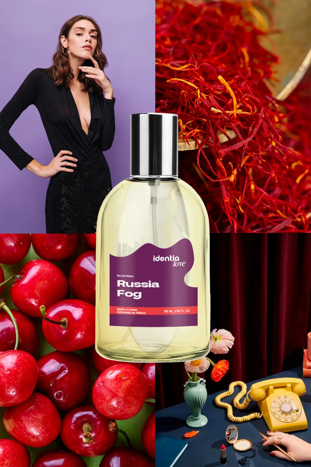 Russia Fog — Inspirada en Cherry Smoke, esta fragancia huele a brunch oscuro y elegante. Combina notas frutales jugosas con cuero profundo y matices ahumados, creando un aroma sofisticado, potente y memorable. Elegante y magnética, deja una estela que te sigue a todos lados, perfecta para quienes buscan un perfume con carácter, personalidad y presencia que no pasa desapercibida.