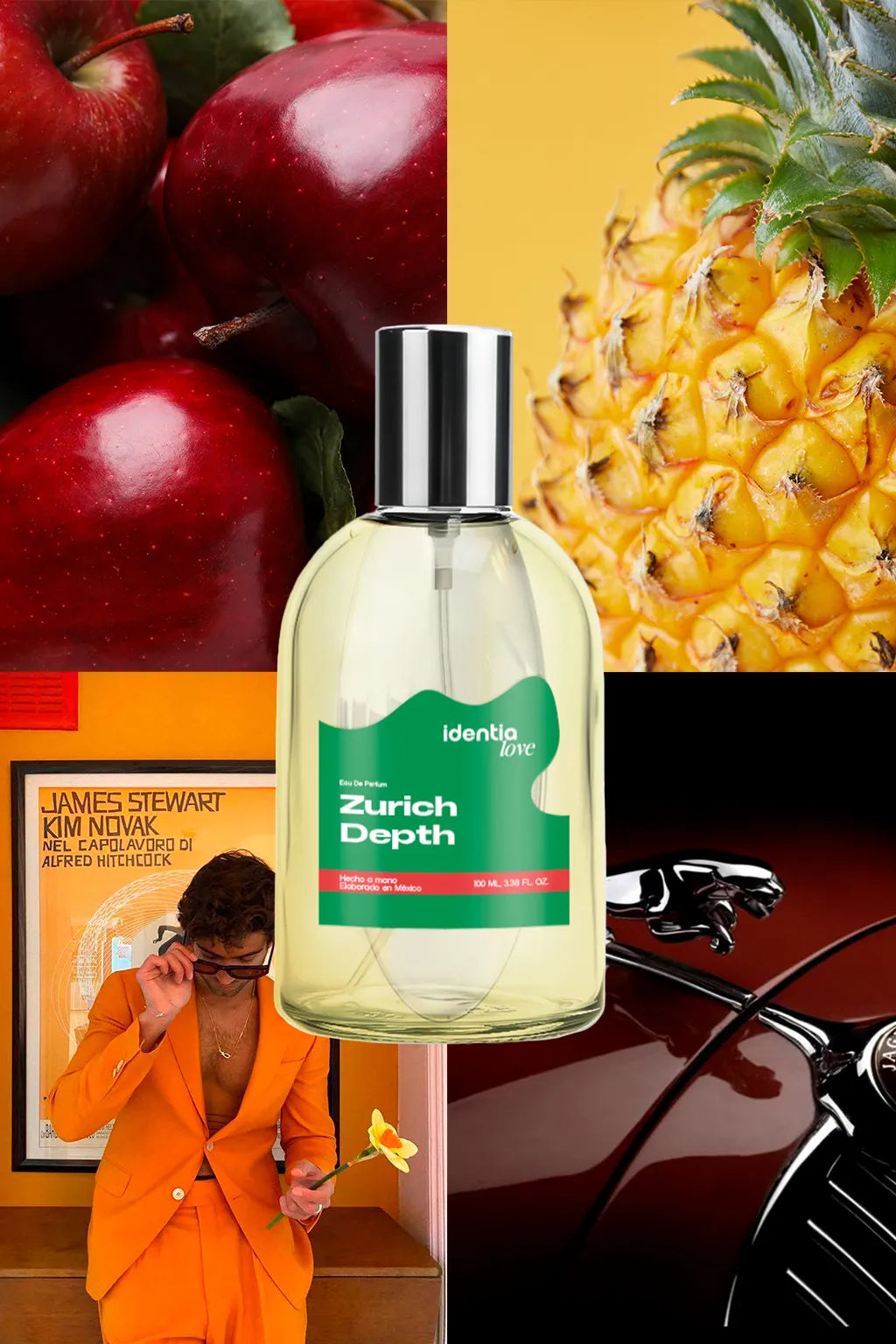 Zurich Depth — Inspirada en Aventus - Creed, esta fragancia femenina huele a brunch moderno con fruta, flores y maderas. Combina notas frutales jugosas, matices florales delicados y maderas suaves, creando un aroma fresco, elegante y memorable. Perfecta para quienes buscan un perfume sofisticado con personalidad, que deje una estela distintiva y despierte curiosidad sin esfuerzo.